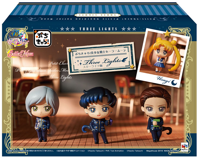 Сегодня, 3 февраля, компания "MegaHouse" анонсировала новые чиби-фигурки, выбранные по голосованию самими фанатами. Ими оказались Three Lights и Усаги в их униформе старшей школы. Все фигурки имеют в шее шарнир, благодаря которому они могут двигать головой и свои собственные подставки. Данный лимитный набор выйдет в коробке, декорированной фольгой, в июне этого года. Цена - 3000 йен.