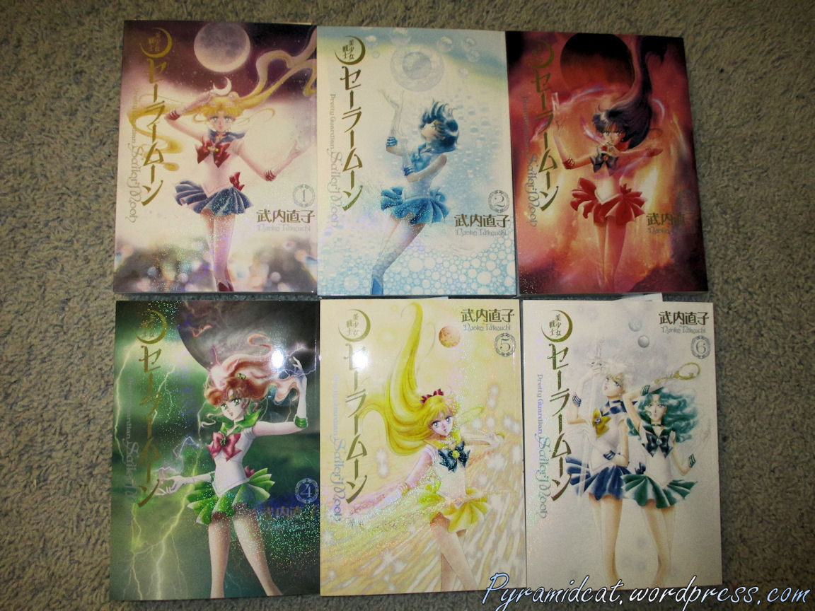 На корешке располагается обновлённый дизайн наименования манги – крупный японский оригинал и более мелкий английский вариант, имя автора и номер тома в узорчатом круге. На задних обложках книг изображены силуэты воительниц и обновлённый логотип названия (за исключением 2 тома с Ами – на её задней обложке, как и у 1 тома, изображён силуэт Сейлор Мун. С чем это связано – неизвестно).