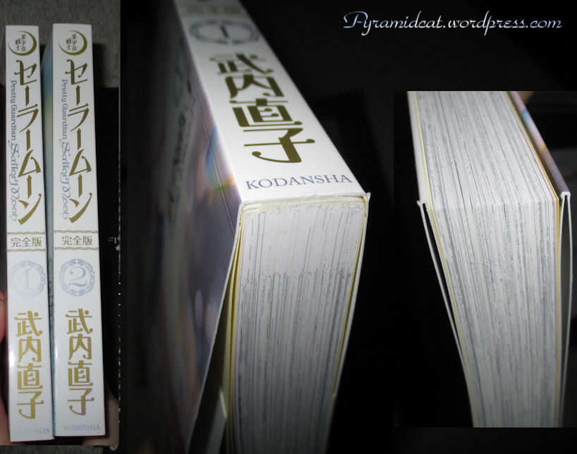 Все книги выходили запечатанными в термоупаковку, что позволяло избегать повреждений томиков вследствие многочисленных прикосновений к ним. На плёнке, на передней обложке, расположен большой 完全版 (канзебан) стикер золотистого цвета, и стикер с ISBN штрих-кодом, на задней. Сама книга очень тяжёлая – около 300 страниц – качественная и крепкая. Вместо твёрдого переплёта был использован мягкий, но не ломающийся и плотный, с клапанами. По всей видимости, его можно считать за интегральный переплёт. Обе обложки – передняя и задняя, а также клапаны – имеют голографический эффект. На первый взгляд он может быть незаметным, но если подставить обложку под источник света или же сфотографировать её со вспышкой, то можно увидеть множество маленьких и ярких искорок.
