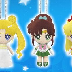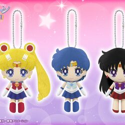 Первый же сет данных чибиков-брелоков к 3 арке был анонсирован 27 января. В комплект входили: Сейлор Мун, Сейлор Меркурий и Сейлор Марс. Как и второй сет, они выходили с шариковыми цепочками, чтобы их можно было подвесить где угодно и использовать по назначению в качестве брелка. Высота первых чибиков - также 11 см. Они будут загружены в крабы-автоматы в июне этого года.