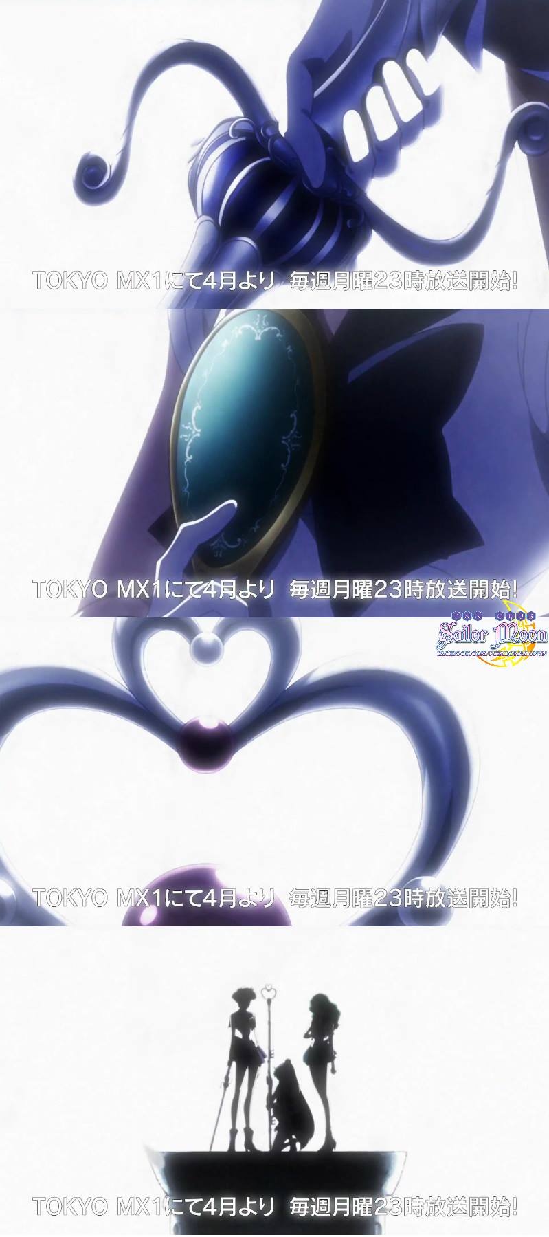 - Будут новые опенинг и эндинг: опенинг будет носить название Nyūmūn ni koishite (Влюбленные в Новолуние). Он будет исполнен Etsuko Yakushimaru, певицей, исполнявшей песню Otome no Policy для трибьют-альбома лучших песен, приуроченного к 20-летию выхода СМ; новый эндинг будет называться Eternal Eternity (Вечная бесконечность). Он будет исполнен дуэтом сейю Сейлор Уран (Дзюнко Минагава) и Сейлор Нептун (Саяка Охара). "Сингл с темами опенинга и эндинга нового сезона выйдет в продажу 27 апреля. Он будет состоять из CD и DVD, стоимость его составит 1500 иен с налогом. В качестве бонуса на диске будет помещены видео опенинга и эндинга без титров."(с) Yuki-Onna.