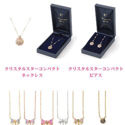 - Серьги "Crystal Star Compact": как и подвеска, выполнены в форме брошки Усаги из 2 сезона и изготовлены из 10-каратного золота, изумруда, рубина, жёлтого сапфира, синего топаза, маленьких бледно-розовых топазов, розового сапфира, бриллианта, пресноводного жемчуга. Цена - 83 000 йен.