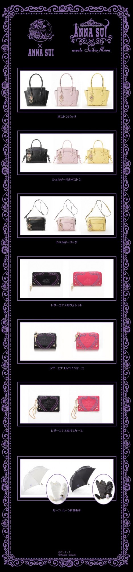 Помимо этого, был обновлён модельный ряд для линеек "Sailor Moon X ANNA SUI" и "Sailor Moon X Samantha Vega". Среди новых вещей были заявлены:
