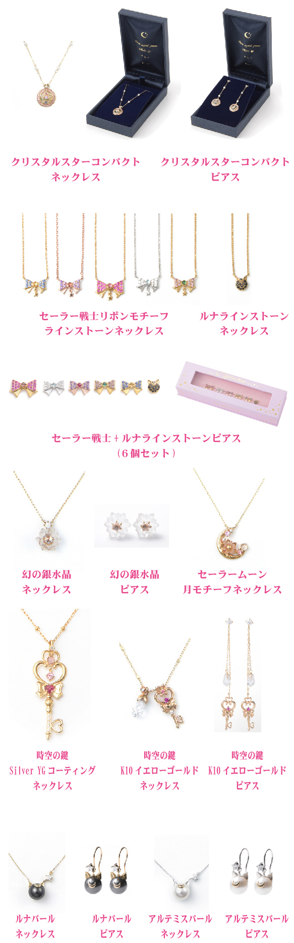 - Подвески в форме бантов внутренних воинов "Sailor Senshi Ribbon Motif Rhinestone Necklace": всего будет 5 видов - по одному на каждую воительницу. Все подвески изготовлены из 925-каратного серебра; длина цепочек 40 см: