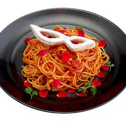 - Tuxedo nihilistic pasta Kamen (паста в Такседо-стиле: с острым томатным соусом, маской-пирогом и лепестками роз :D) - 1300 йен.