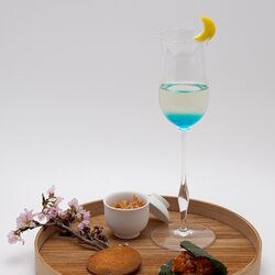 - Yokoshimakuro crystal cocktail - алкогольный коктейль с дополнительной безалкогольной жидкостью синего цвета; по всей видимости, при добавлении жидкости становится чем-то вроде "темы" Чёрной Леди. Цена - 1000 йен;