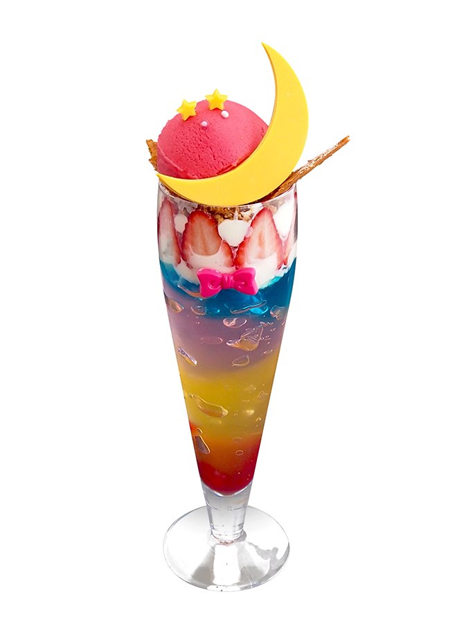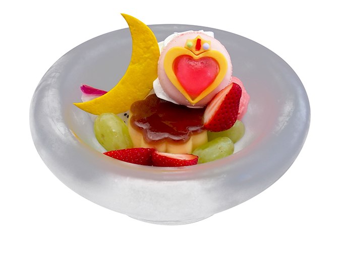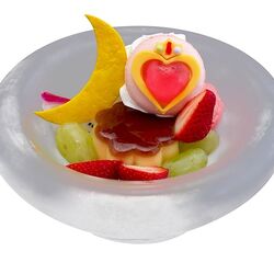 - Pudding a la mode of Chibi Usa: японский пурин (пудинг) с фруктами, мороженным, макрун-печеньем в форме первой броши Чибиусы, украшен сдобной булочкой в форме полумесяца. Цена - 1100 йен;