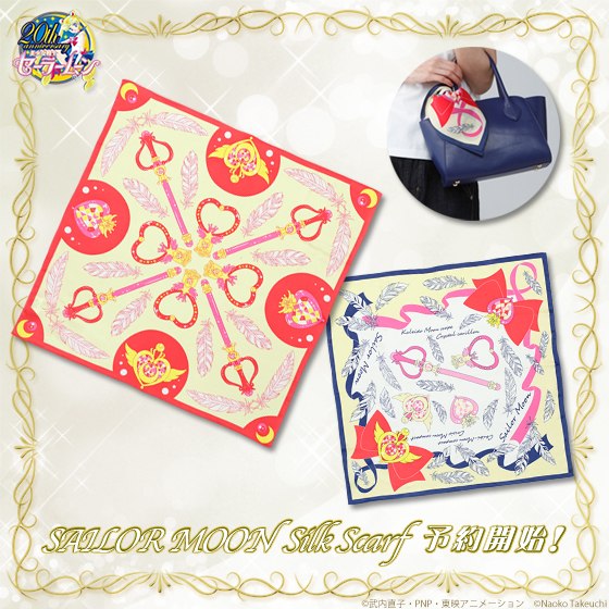 30 марта "Premium Bandai" сделало анонс очередной продукции по СМ. Ей оказались 2 шёлковых шарфа, которые можно использовать в повседневной жизни и бизнес-среде. Расцветок у них будет 2 - красная и тёмно-синяя. Узоры на шарфах представляют собой броши Лунного Кризиса Сейлор Мун и Сейлор Чибимун из 4 арки, Лунный Калейдоскоп СМ, Колокольчик Чибимун, а также перья Пегаса. На красном шарфе эти изображения выложены в строгий и элегантный геометрический узор с полумесяцами на 4 углах. Синий шарф имеет стильный дизайн, где предметы для атак и превращений, а также перья, расположены в хаотическом порядке и окружены лентами и бантами с брошками. Шарфы можно носить как на шее, так и на сумке.