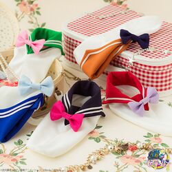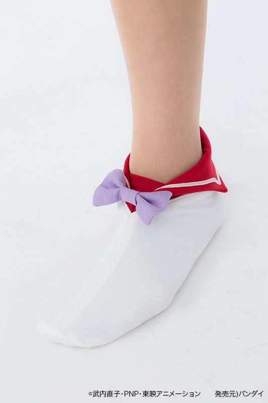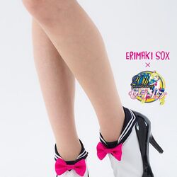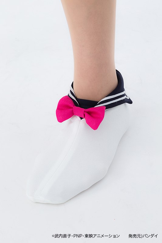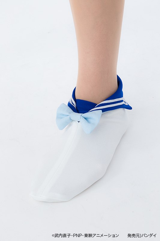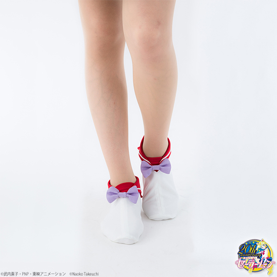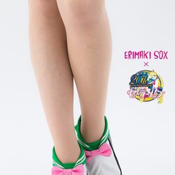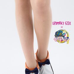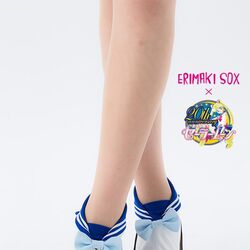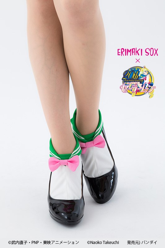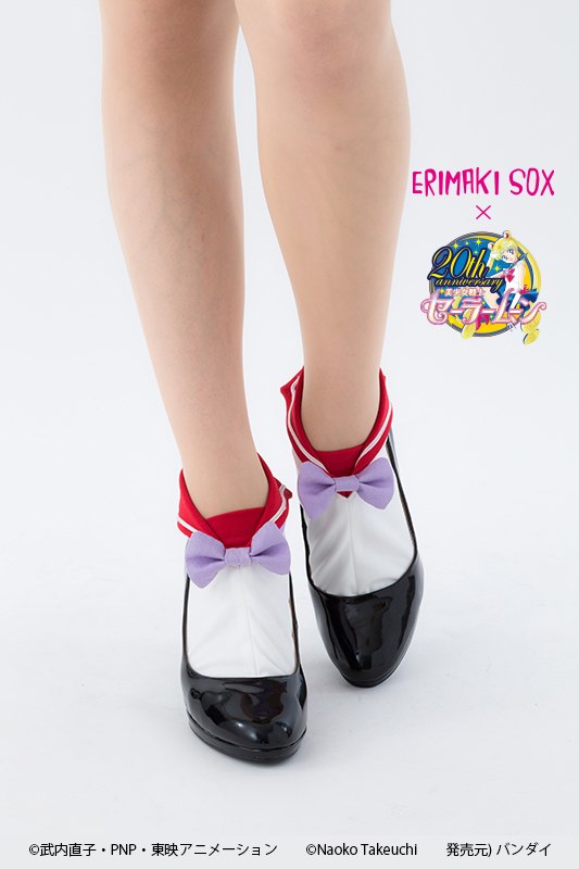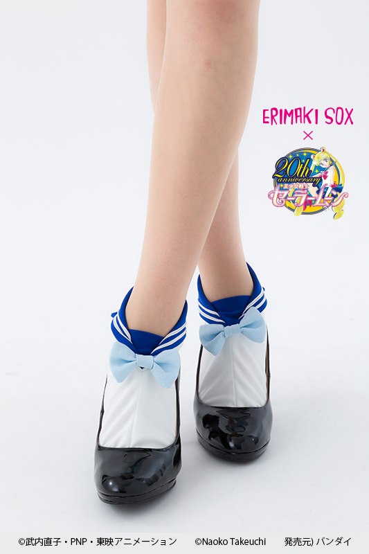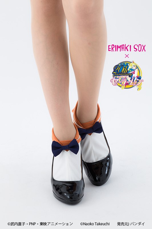 Также, сегодня было объявлено о сотрудничестве Сейлор Мун и фирмы "Erimaki Sox", производящей носки в качестве модных аксессуаров. В его рамках будет выпущена линейка носочков с темой сейлор-воинов. Всего в ней 5 видов: Сейлор Мун, Меркурий, Марс, Юпитер и Венера. Каждая пара имеет матросский воротник, с полосками, и ленточку с бантом. Ленты являются съёмными, поэтому носки можно носить в более упрощённом варианте, только с воротником.