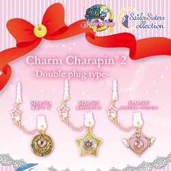 Ранее, 12 мая, "Gourmandies" анонсировали ещё один продукт по СМ - сет двойных затычек для наушников и гнезда для зарядки под названием "Sailor Moon Charm CharaPin Double Plug Type". В комплект входят затычки в форме:
