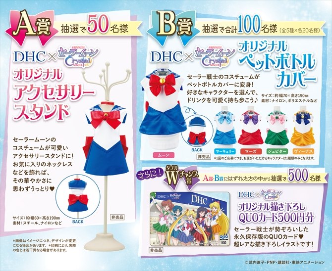 В тот же день было объявлено о второй лотерее в сотрудничестве SMC III и DHC (о первой лотерее было упомянуто здесь). Она пройдёт с 12 мая по 6 июля. Суть заключается в следующем: при покупке определённых косметических товаров данной фирмы, можно выиграть призы, связанные с тематикой Сейлор Мун. В этот раз они выглядят так:
