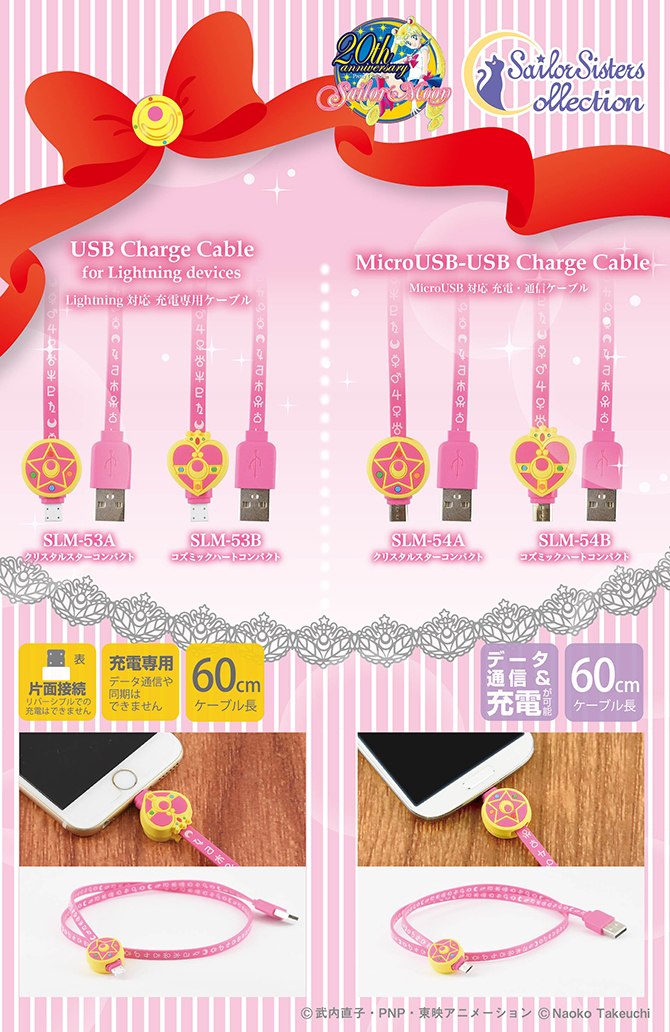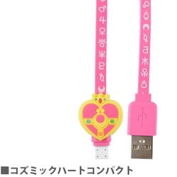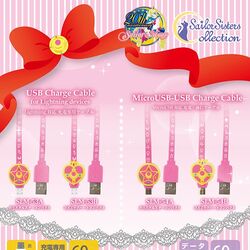 Сегодня фирма "Gormandies" сделала очередной анонс своей продукции по Сейлор Мун. Ей оказались кабели, которые можно использовать как для подзарядки, так и для передачи данных через USB. Данные кабели предназначены для устройств фирмы Apple,с микро USB и Lightning (8-контактным) разъемом. Всего будет выпущено 2 вида: с Кристальной брошью и брошью Космического Сердца. Сам кабель - розового цвета, с узором в виде символов планет.