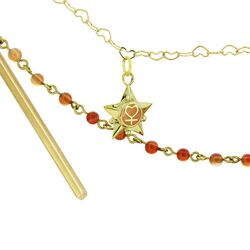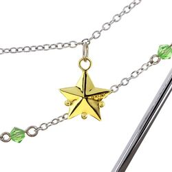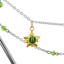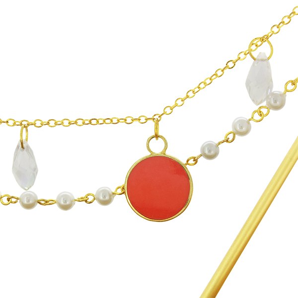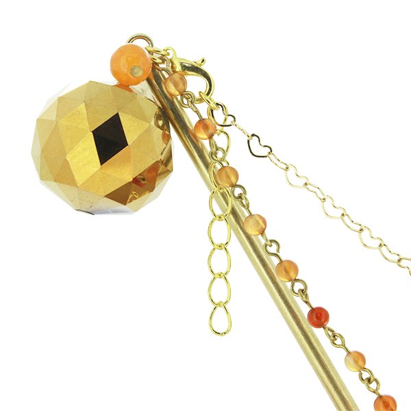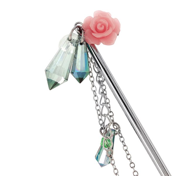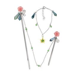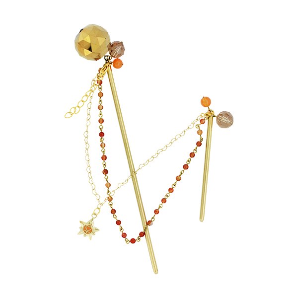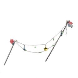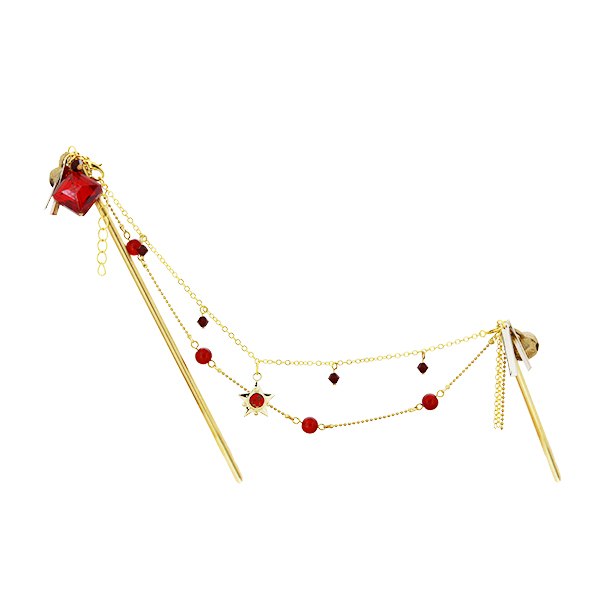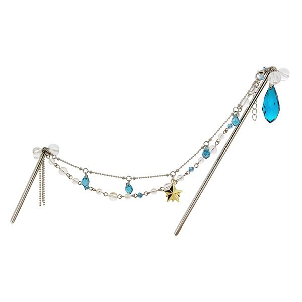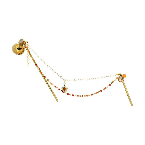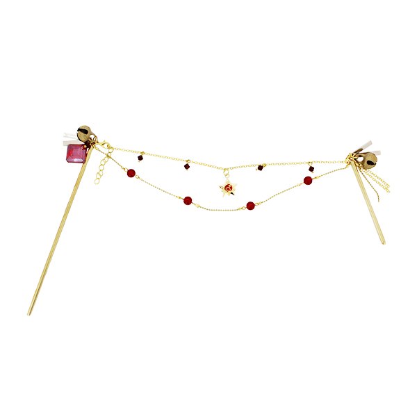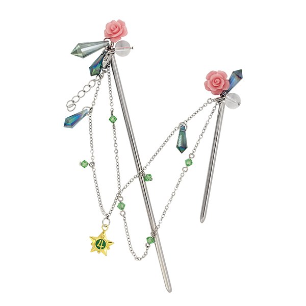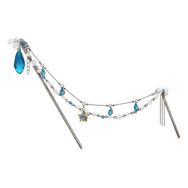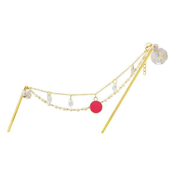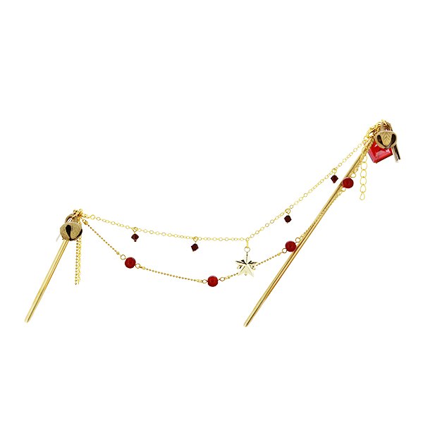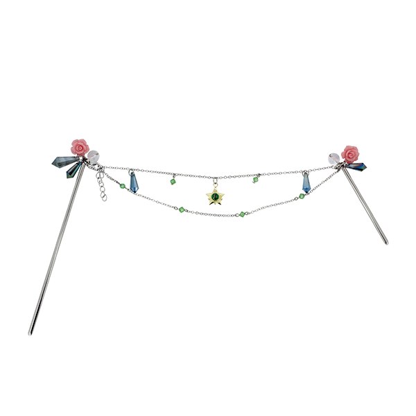 Первый тип выполнен в стиле "внутренних сенши": всего в линейке их - 5 штук, они двойные, сделаны из латуни, имеют 2 цепочки и декорированы большим количеством сверкающих бусин соответствующих цветов и мелкими украшениями (пример - розы на шпильках Макото), благодаря чему они больше похожи на ювелирные украшения из-за своей тонкости и изящества. Цепочки являются съёмными и их можно будет использовать в качестве браслетов. С помощью длинного и короткого концов, можно создавать различные варианты причёсок. Данные шпильки хорошо сочетаются как с кимоно, так и с повседневной одеждой