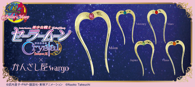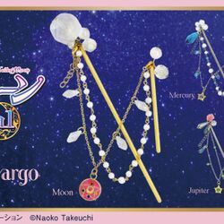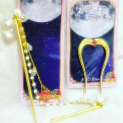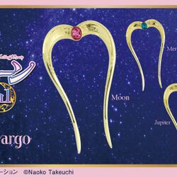 Сегодня, в рамках очередного модного сотрудничества Сейлор Мун - с компанией "Kanzashiya Wargo" - была анонсирована очередная линейка новой продукции. На сей раз это оказались два вида блестящих шпилек для волос золотистого цвета, сделанных из латуни.