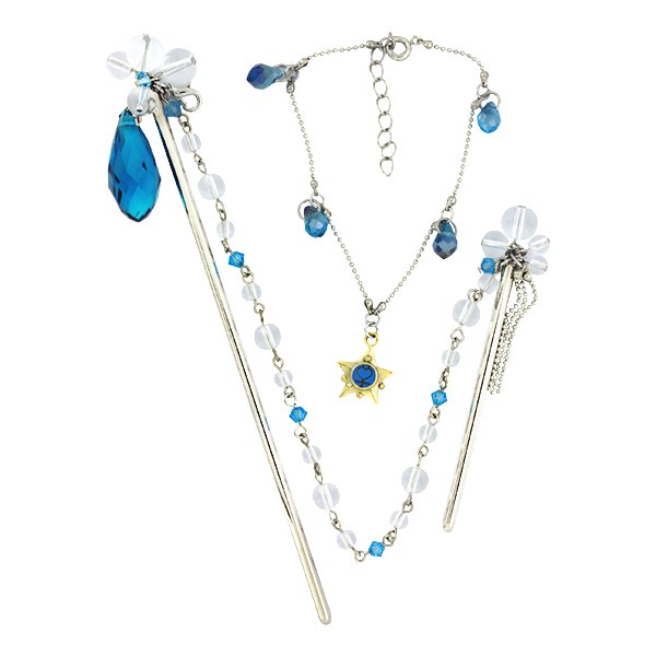 Второй же вид шпилек выполнен в форме диадем "внутренних" сейлор-воительниц. В центре - яркий и блестящий огранённый камень соответствующего цвета. На оборотной стороне выгравирован символ той или иной планеты. Розничная цена за каждую шпильку составит 6900 йен. Релиз обоих линеек назначен на 24 июня; доступны они будут в магазинах "Wargo".