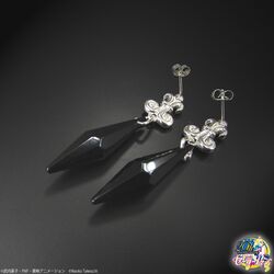 Вторым товаром оказались серьги Чёрной Леди из 2 сезона СМ - "Black Lady Evil Black Crystal Earrings". Пара будет выпущена для взрослых женщин и в размере, позволяющем использовать серьги ежедневно. Застёжка будет изготовлена из серебра 925 пробы, сами "кристаллы" - из смолы. Размеры серёжек - 4,8 см. в длину и 1 см. в ширину.