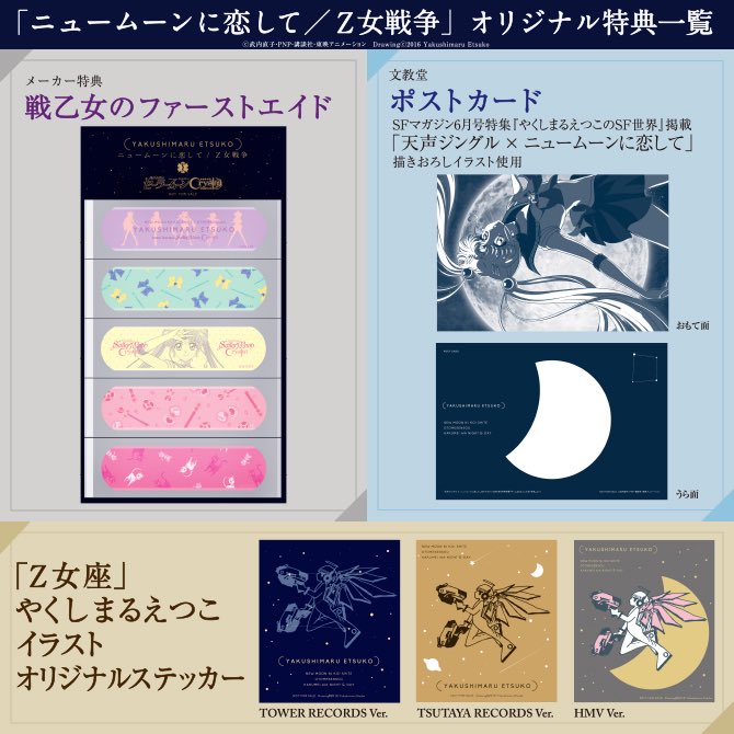 - TOWER RECORDS, HMV, TSUTAYA RECORDS: стикер с артом, расположенном на обратном стороне коробки для диска; в каждом из трёх магазинов стикеры имеют свою цветовую гамму.