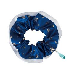 - Резинка для волос. Выполнена в синей цветовой гамме с золотыми узорами в форме полумесяцев и звёзд, как и косметичка имеет при себе шарм в форме кристалла на цепочке.