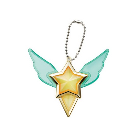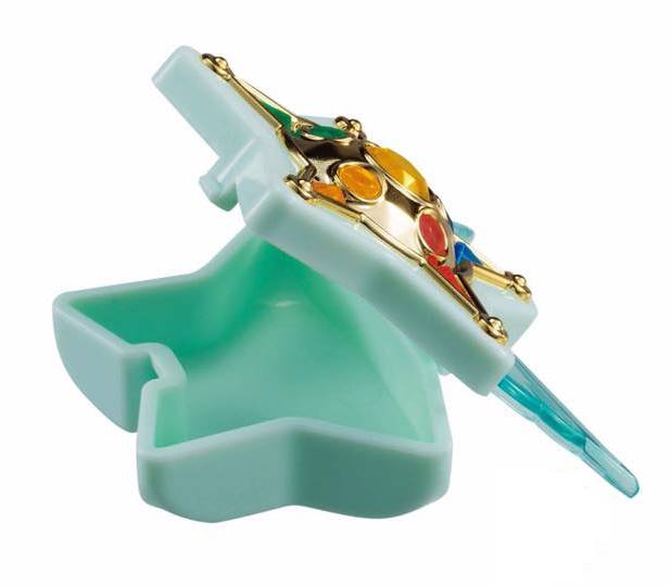 - Небольшая коробочка для хранения всякой мелочи в форме брошки Старлайтов "Sailor Star Yell Case": как и зеркальце, имеет в оформлении металлические и прозрачные части. Идёт в комплекте с цепочкой. Размер - 7, 3 см.
