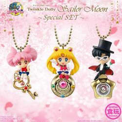 Сегодня же компания "Bandai" анонсировала специальный комплект подвесок с конфетами из серии "Sailor Moon Twinkle Dolly". В него войдут 3 фигурки: