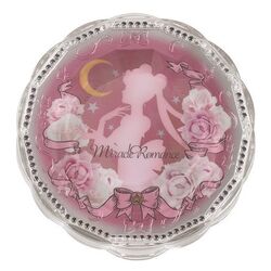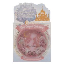 - румяна. На полупрозрачной коробочке с ними - силуэт Лунной Принцессы, полумесяца и звёзд на ярко-розовом фоне, в окружении бутонов роз и банта с брошкой из 2 сезона. Варианты цвета - розовый и оранжевый. В комплекте - мягкая щёточка для нанесения румян.