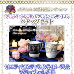 2 сентября было объявлено повторное сотрудничество СМ с компанией "Noritake", производящей посуду. На сей раз будет выпущен набор из 2 фарфоровых кружек, которые будут оформлены в стиле Принцессы Серенити и Принца Эндимиона. Кружка Принцессы будет белого цвета с 3 золотистыми орнаментами на ней: