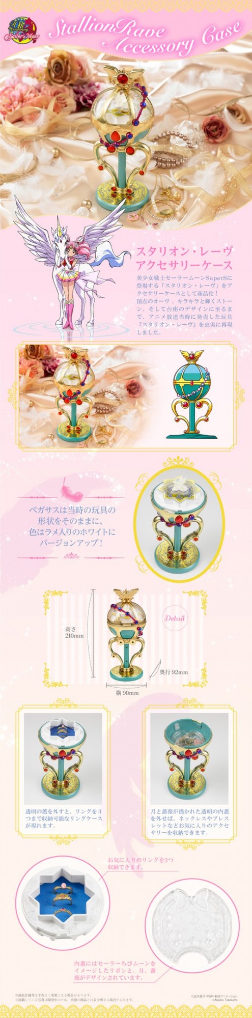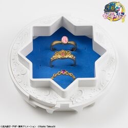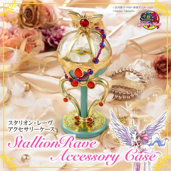 Компания "Premium Bandai" анонсировала шкатулку для украшений в форме "Pegasus Stallion Reve" из первого аниме по СМ. Данная шкатулка выполнена из пластика и имеет 2 отсека: верхний, предназначенный для 3 колец (скрыт фигуркой Пегаса) и нижний - для мелких украшений, вроде серёг или подвесок. Отделения разделены прозрачной крышкой, с узором в форме банта Чибиусы,полумесяца, звёзд и роз. В отличие от версии 90-х, у него нет световых эффектов или проигрывающейся музыки. Высота шкатулки 21 см. х 9 см. х 9,2cм.