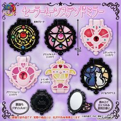 29 же сентября был анонсирован очередной набор гасяпонов - зеркальца в витражном стиле и украшенные кристаллами "Sailor Moon Stained Mirror". Линейка будет выглядеть следующим образом: