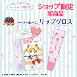 - Блеск для губ с травяным запахом . Масло шиповника и жожоба, основные компоненты блеска, увлажняют губы, делают их мягкими и блестящими. Благодаря бесцветности, его можно использовать в повседневной жизни. Упаковка – розового цвета с узором из символов планет и предметов СМ из первых 3 сезонов. Цена – 850 йен.
