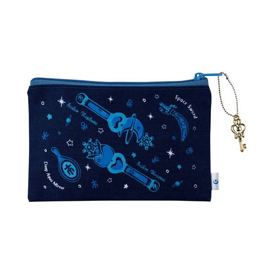 - Косметичка синего цвета с тематикой Уран и Нептун: их жезлы, талисманы и знаки планет. На замке – подвеска в форме Ключа Времени-Пространства. Размер – 17 см. х 11 см.