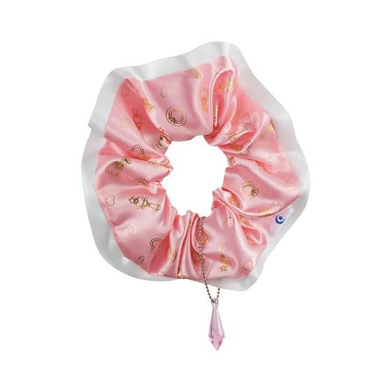 - Резинка для волос. Розового цвета с узором в виде предметов Чибиусы + подвеска в форме кристалла. Размер – 11 см.
