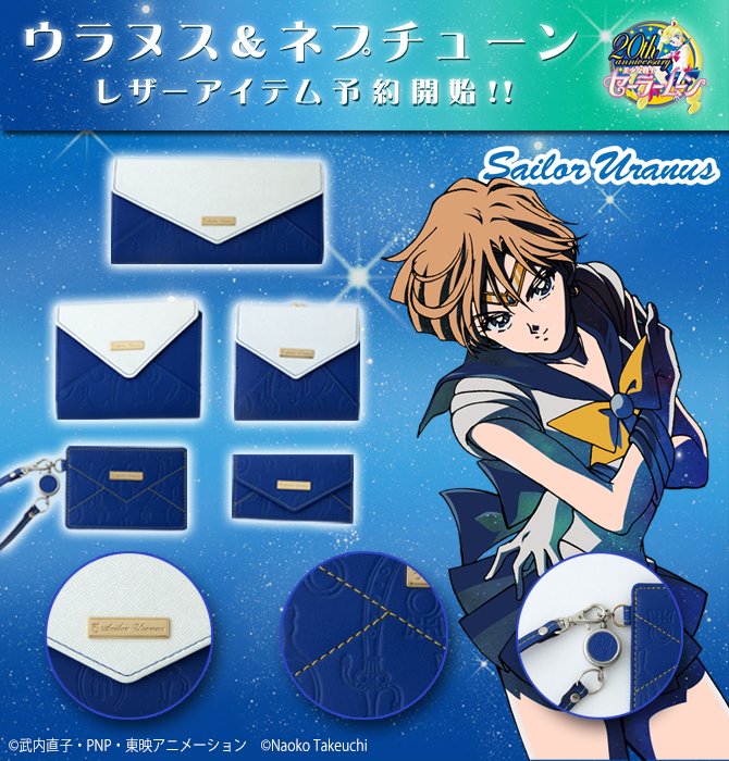15 декабря компания "Premium Bandai" анонсировала выпуск модных кожаных изделий, фокусирующихся на тематике Сейлор Уран и Сейлор Нептун - "Pretty Soldier Sailor Moon Uranus & Neptune Leather Series". В линейку аксессуаров, сделанных из натуральной кожи, будет входить 5 видов вещей: