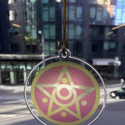 - Как и предыдущий раз, если заказать сет на RightStufAnime, то в качестве бонуса можно получить подвеску с узором в форме Кристальной броши СМ.