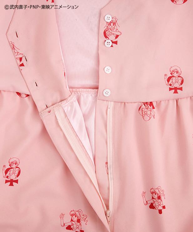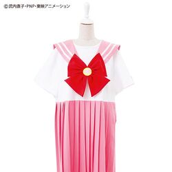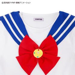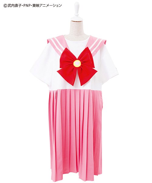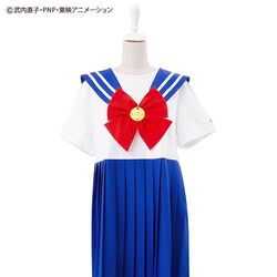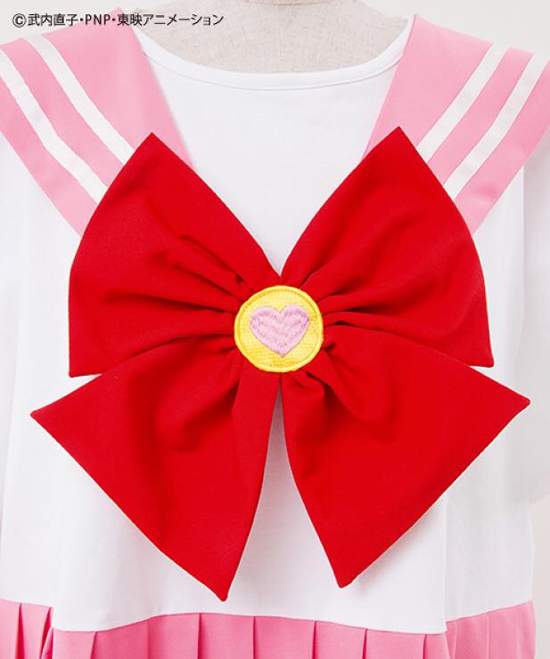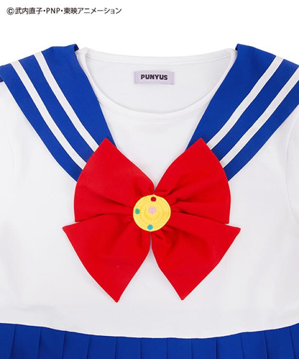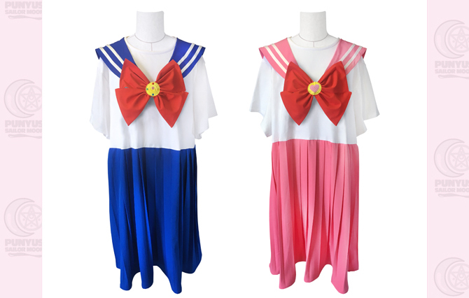 - «Sailor Moon/Sailor Chibimoon Uniform One Piece»: платья, представляющие собой униформы лунных воительниц, сделаны из материала для футболок. На груди – большая лента, сложенная в форме банта и украшенная вышитой брошью. Цена за платье – 8 990 йен.