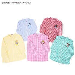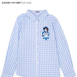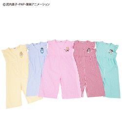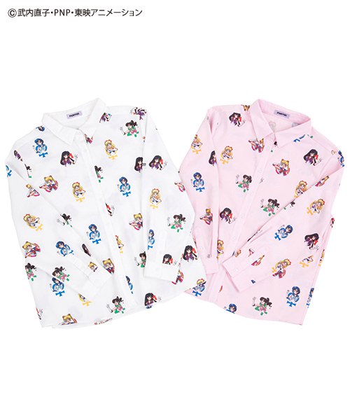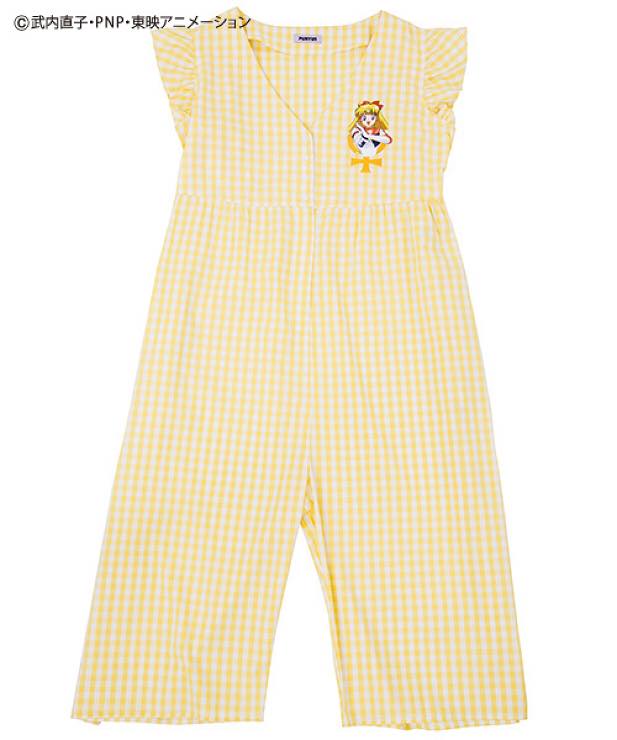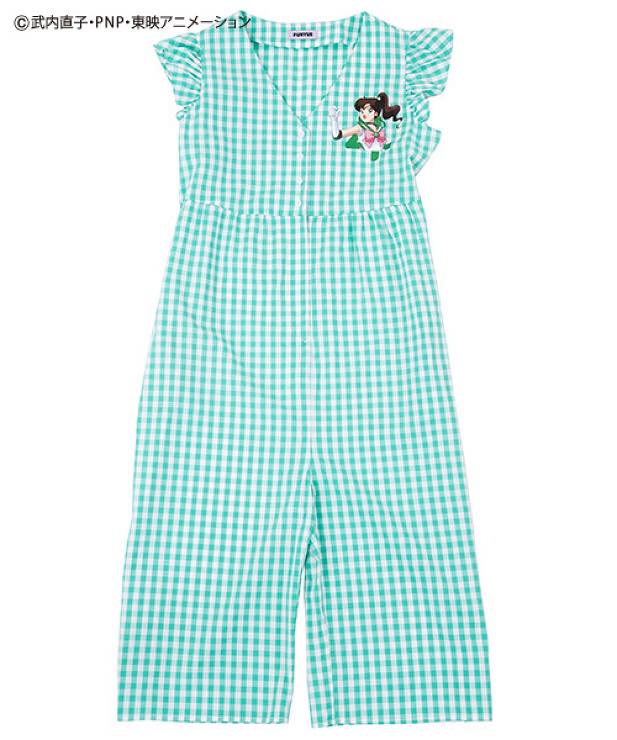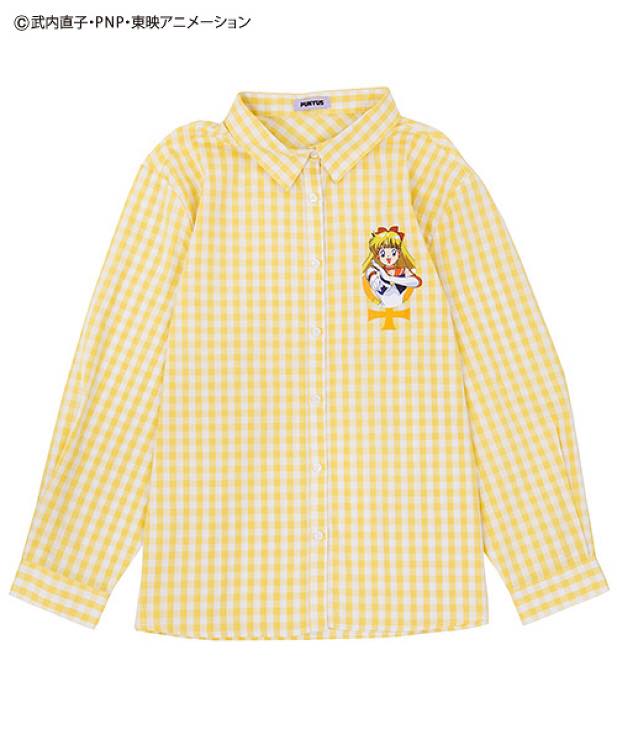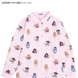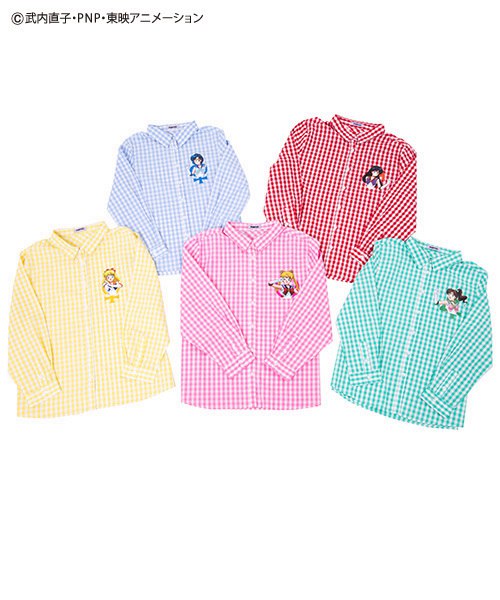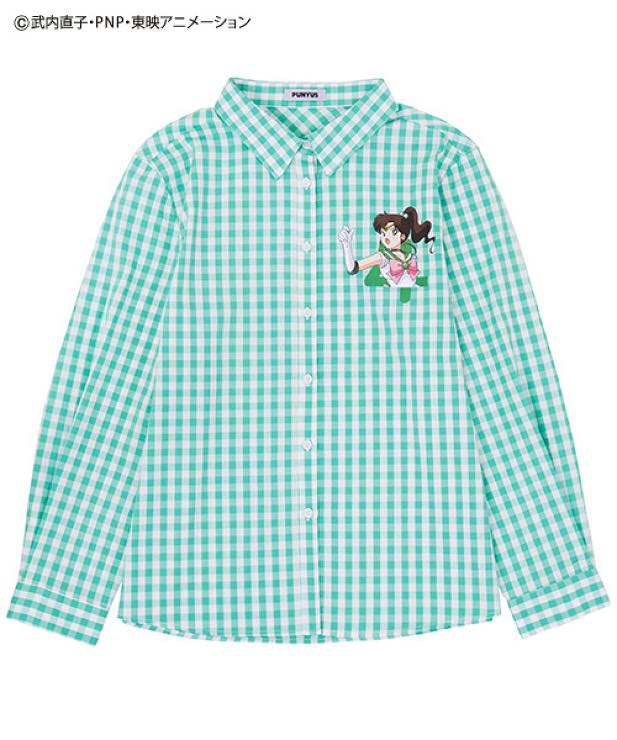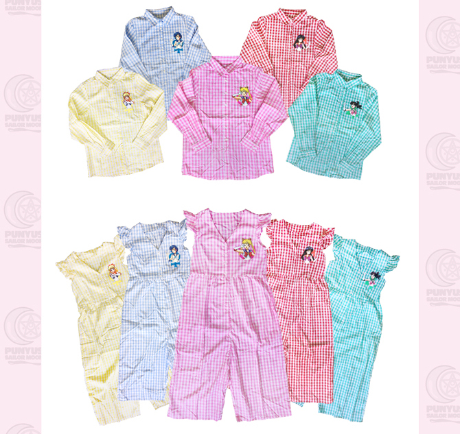 - Рубашки и комбинезоны«Sailor Senshi Print Gingham Check Shirt/Gingham Romper»: рубашки с длинными рукавами и комбинезоны с клетчатым орнаментом. Сделаны из ситцевого материала. Выйдут в 5 цветовых вариациях, соответствующих 5 «внутренним» воинам: розовая (Мун), голубая (Меркурий), красная (Марс), зелёная (Юпитер), жёлтая (Венера). Украшены нашивками с изображениями воительниц на фоне соответствующих планетарных символов. Цена за рубашку – 5 990 йен. Цена за комбинезон – 7 990 йен.