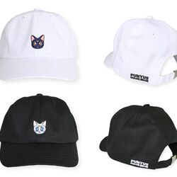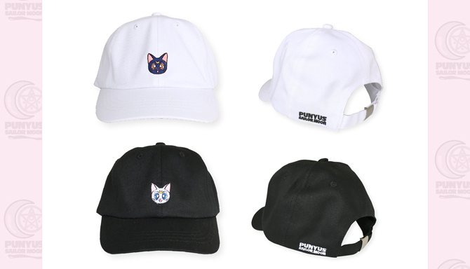 - Кепки «Luna/Artemis Cap»: выйдут в 2 вариантах – белом (Луна) и чёрном (Артемис). Спереди декорированы вышивкой в форме мордочек лунных котов. В нижней части кепок – логотипы «PYNUYS» и «Sailor Moon». Цена за кепку – 2 990 йен.