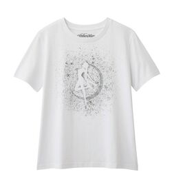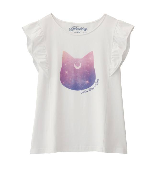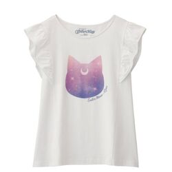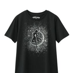 - Футболки «Luna Print T-shirt»: футболки тёмно-синего и белого цветов с модными рукавами – оборками. В качестве принта использован силуэт в форме головы Луны с популярным «космическим» узором, который, таким образом, отражает тематику мира СМ (планеты, звёзды и космос). Рекомендуется носить с юбкой. Цена – 790 йен.