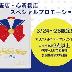 Помимо этого, для покупателей, приобретших более 1 вещи, в качестве бонуса полагается специальный подарочный пакет синего цвета, с космическим принтом, силуэтами «внутренних» сенши и логотипом сотрудничества СМ и «GU». С 24 по 26 марта, в магазине «GU» в Гинзе, при покупке более 2 вещей, покупатели могли получить в подарок карманное зеркальце.