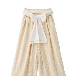 - Штаны «Serenity» имеют бежевый цвет, поверх них нашита кружевная ткань. Как и штаны «Мун» имеют на талии, в качестве пояса, белую ленту, под лентой-поясом - золотая вышивка в форме надписи«Princess Serenity».