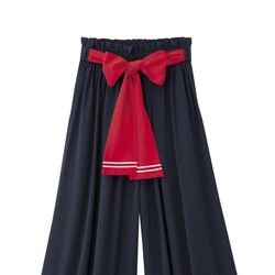 - Штаны «SailorMoon» имеют тёмно-синий цвет и красную ленту в качестве пояса на талии. На талии, под поясом-лентой, - белая вышивка в форме логотипа «Sailor Moon».