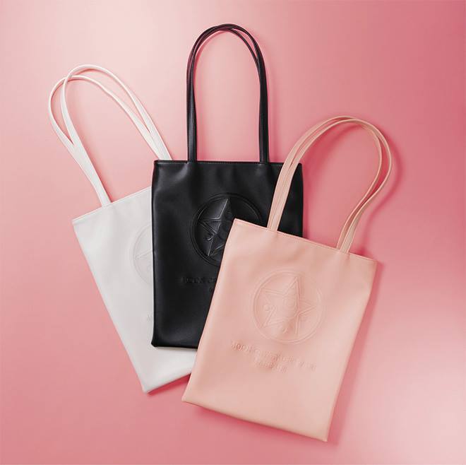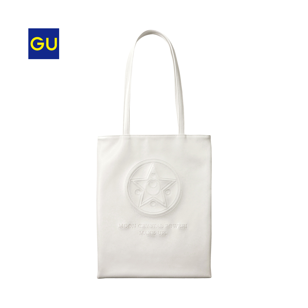 - Большие сумки «Crystal Star Compact Tote Bag»: сделаны из искусственной кожи, имеют тиснение в форме броши Кристальной звезды и фразу для превращения – «Moon Crystal Power Make Up!». Выйдут в 3 цветовых вариантах – белом, розовом и чёрном. Подкладка внутри – розового цвета, также есть 2 небольших внутренних кармана. Цена за сумку – 1990 йен.