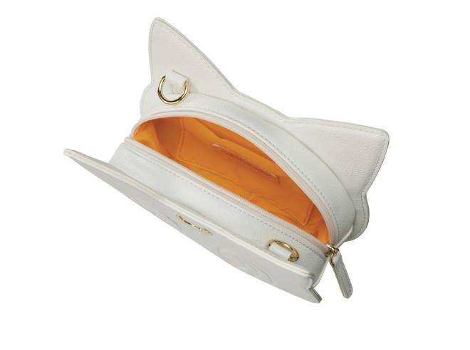 - Сумки на плечо «Luna & Artemis Shoulder Bag»: сделаны в форме голов лунных кошек, имеют тиснение в виде мордочки, декорированы полумесяцем бледно-золотого цвета. Выйдут в 2 соответствующих цветовых вариантах – чёрном и белом. Имеют ремешок на плечо. Внутренняя подкладка – розового/оранжевого цвета; также внутри есть дополнительный небольшой карман. Цена за сумочку – 1990 йен.