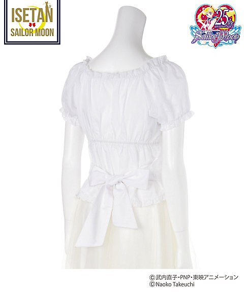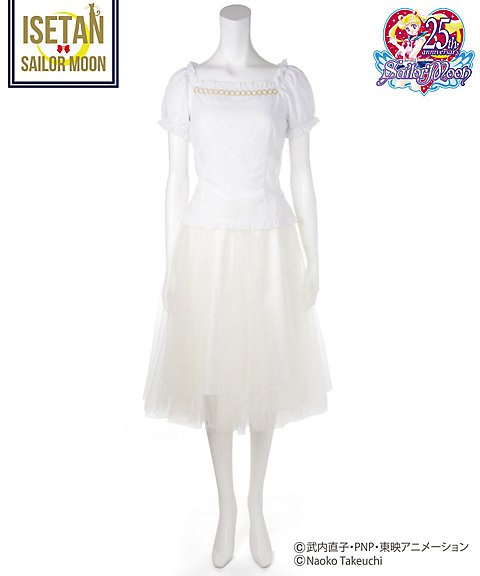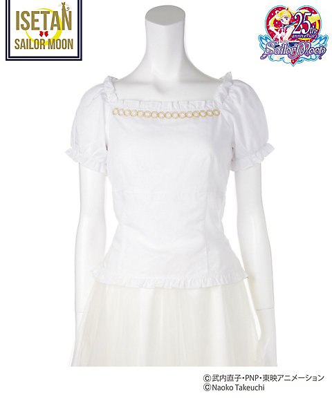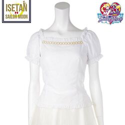 - Блузка «Princess Serenity Blouse»: блузка, стилизованная под платье Принцессы Серенити. На груди – золотая вышивка, как на платье принцессы, рукава блузки – пышные и пухлые, на спине – бант. Благодаря своему дизайну, подходит для повседневного использования. Размер блузки: в груди – 97 см., в талии – 88 см., общая длина – 47,5 см. Цена – 16000 йен.