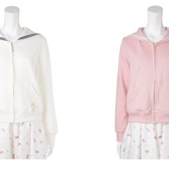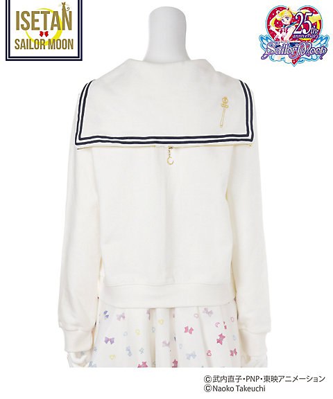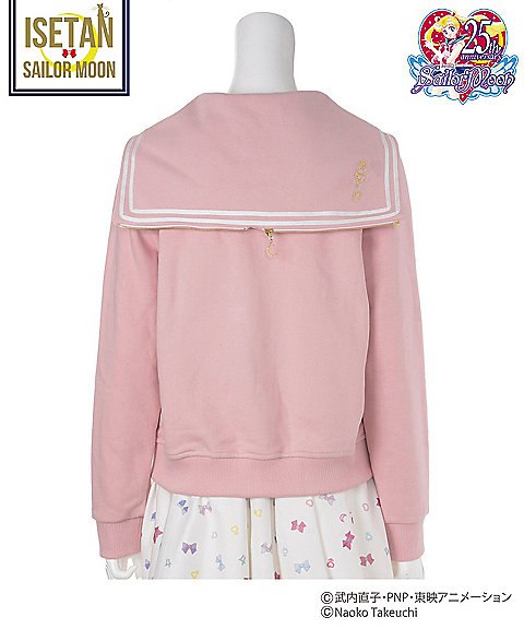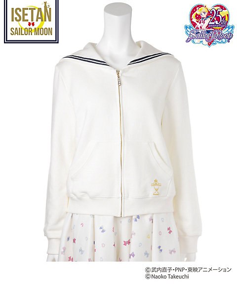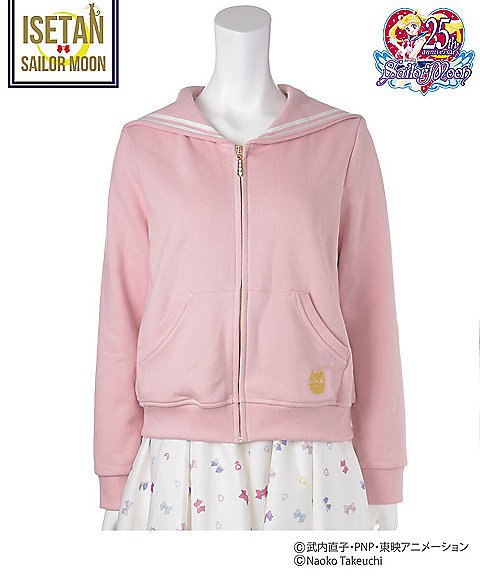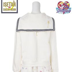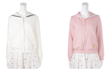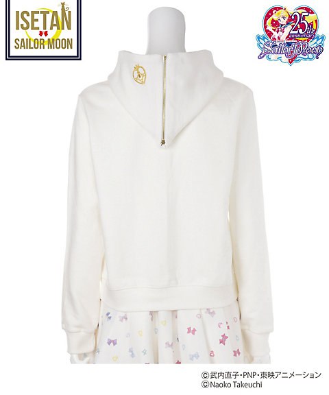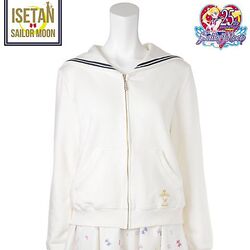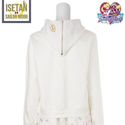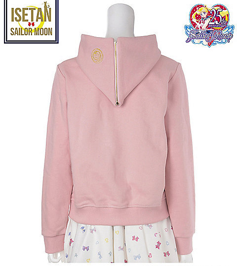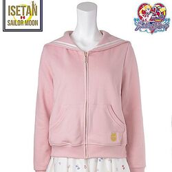 - Тёплые куртки «Sailor Moon or Sailor Chibimoon Sailor Collar Parka»: выполнены в стиле Мун и Чибимун. Парка Мун белого цвета, полоски на вороте-матроске – чёрные. Левый карман украшен вышивкой в форме Святого Грааля. На внешней стороне воротника – вышивка в форме Спирального Сердечного Лунного жезла. Также на вороте имеется молния с замком, декорированным полумесяцем, застегнув которую, можно превратить воротник в капюшон и увидеть ещё одну вышивку – в форме броши Космического Сердца. Парка Чибимун – розового цвета, полоски на вороте – белые. Левый карман украшен вышивкой в форме Луны-Пи. На внешней стороне воротника-матроски – вышивка в форме Ключа Пространства-Времени. Как и у ворота на парке Мун, матроска на куртке Чибимун имеет молнию с замком, который декорирован полумесяцем. При её застёгивании и превращении ворота в капюшон, тоже увидеть ещё одну вышивку – в форме брошки «Heart Compact». Длина парки – 56 см., ширина – 96 см. Цена за одну куртку – 17000 йен.