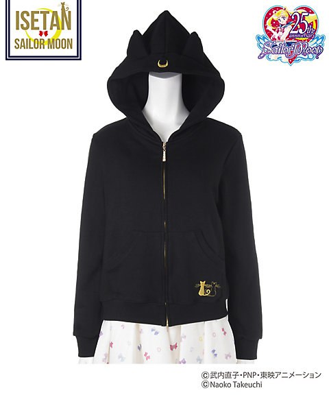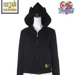 - Куртка с капюшоном «Luna Parka with Cat Ears»: чёрного цвета, капюшон декорирован кошачьими ушками и вышивкой в форме золотого полумесяца. Левый карман, спереди, также декорирован золотистой вышивкой – в форме кошачьего силуэта. Длина парки – 56 см., ширина – 96 см. Цена – 17000 йен.