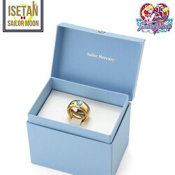 - «Меркурий»: тарелка – голубого цвета, на дне тарелки – золотистые надпись «Sailor Mercury» и планетарный символ Меркурия. На обратной стороне – золотистый силуэт воительницы Меркурия.
