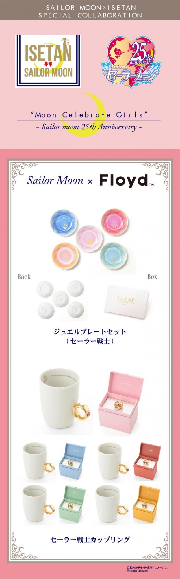 Как уже было неоднократно упомянуто ранее, в связи с празднованием 25-летия появления СМ, было принято решение о проведении нескольких сотрудничеств, среди которых был анонсирован уже 3 общий проект СМ и магазинов «ISETAN», получивший название ~Moon Celebrate Girls~. В число упомянутых ранее брендов - «Samantha Tabita», «Anna Sui», «BURNEDESTROSE» и «Narue» - вошёл также бренд «Floyd», в рамках сотрудничества с которым будет выпущено несколько видов различных товаров для повседневных нужд. Их перечень выглядит следующим образом: