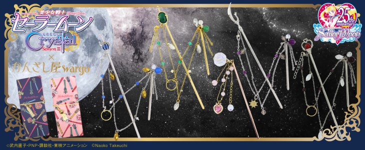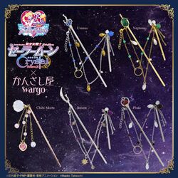 10 марта официальный сайт объявил о продолжении сотрудничества с компанией «Kanzashiya Wargo», которая специализируется на выпуске шпилек канзаши для волос. В дополнение к предыдущей линейке шпилек, выполненных в стиле 5 «внутренних» сенши, будет выпущено ещё 5 шпилек: по одной на каждую «внешнюю» воительницу и Чибимун. Шпильки в стиле «внешних» сенши – двойные (большие стилизованы под Талисманы, Гранатовый Жезл и Глефу Безмолвия), сделаны из латуни (шпилька Нептун – золотистого цвета, Уран, Плутон и Сатурн – серебристые) , имеют 2 цепочки и декорированы бусинами соответствующих цветов, имеющих глянцевый блеск. Цепочки являются съёмными, и их можно использовать в качестве браслетов. Шпильки можно сочетать как с кимоно, так и с повседневной одеждой.