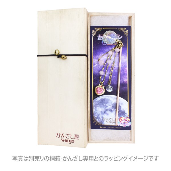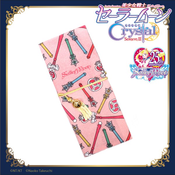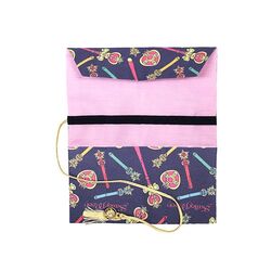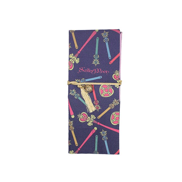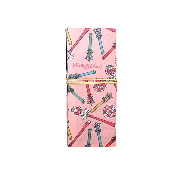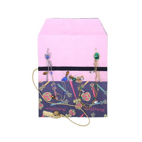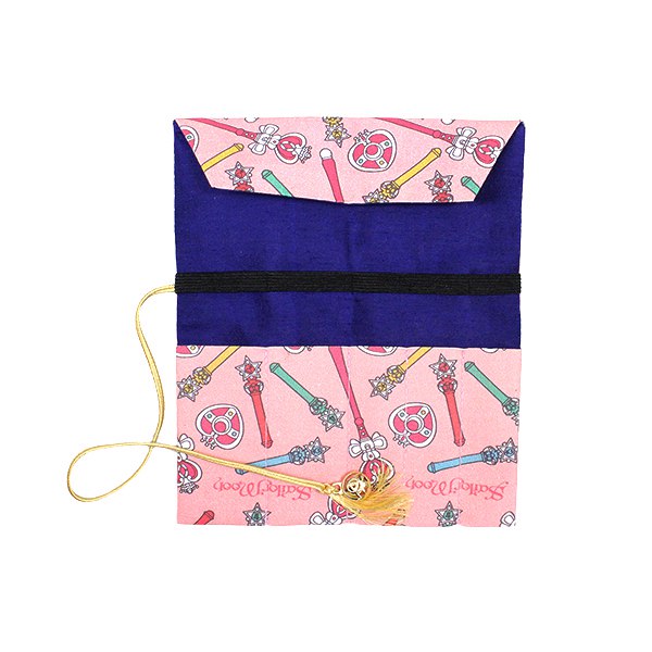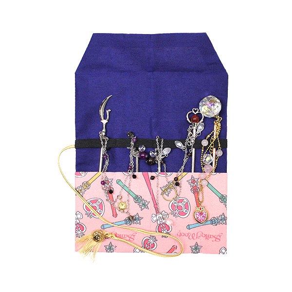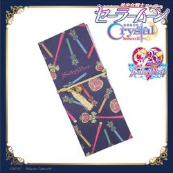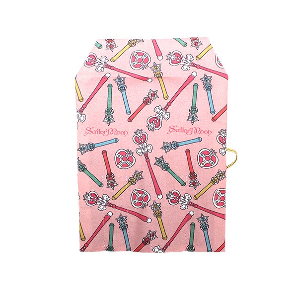 В дополнение к шпилькам были анонсированы чехлы для их хранения. Всего в линейке будет 2 вида чехлов – розовый и тёмно-синий. Принт – Звёздные жезлы «внутренних» сенши, Сердечный Лунный Жезл и брошь Космического Сердца СМ. Закрывается с помощью верёвки золотистого цвета, с кистью и колокольчиком на конце. Данный чехол можно использовать для хранения, как шпилек, так и мелкой косметики (блеск для губ, карандаши), кисточек для макияжа или же в качестве пенала. Цена за чехол – 2052 йены.