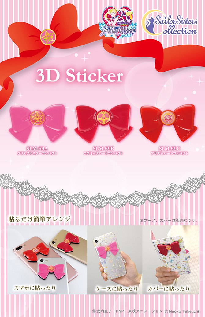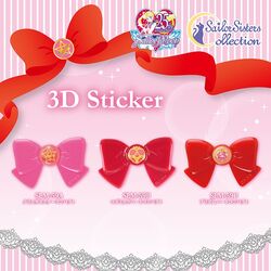 16 марта данным брендом были анонсированы «Sailor Moon 3D Sticker» - объёмные стикеры для планшетов, смартфонов и их чехлов в форме нагрудных бантиков. Всего в линейке 3 модели – розовый бант с Кристальной брошью из 2 сезона, красный бант с брошью Космического Сердца из 3 сезона и красный бант с брошкой Чибиусы «Heart Compact». Изготовлены из поликарбоната с глянцевым эффектом.